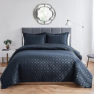EHEYCIGA キングサイズ キルトセット ベッドスプレッド ネイビー 3ピース ベッドスプレッド 枕カバー2枚付き 軽量 洗濯機洗い可 ベッドカバー 106x96インチ