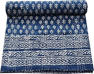 Sophia-Art インドキング ハンドメイド ボヘミアン ハンドブロックプリント ピュアコットン ベッドスプレッド カンタステッチ ヒッピー カンタ ベッドスプレッド リバーシブル ベッドカバー スロー キルト 90*108 Inches