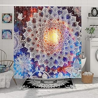 DESIHOM ギャラクシー マンダラ シャワーカーテン ボヘミアンシャワーカーテン ヒッピー ボーホー シャワーカーテン スペーススタイル ポリエステル 防水 シャワーカーテン 72x72インチ