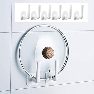 鍋蓋スタンド まな板スタンド 鍋蓋 立て 蓋収納ホルダー キッチン収納フック 6個セット コンパクト 壁掛け式 穴あけ不要 自己粘着 ホワイト