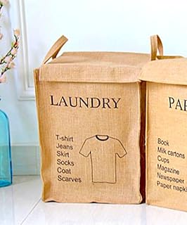 LSpace 麻 収納 ボックス おしゃれ ジュート 分別 ボックス 衣類 ペットボトル 缶 雑誌 新聞紙 (LAUNDRY-Bタイプ)