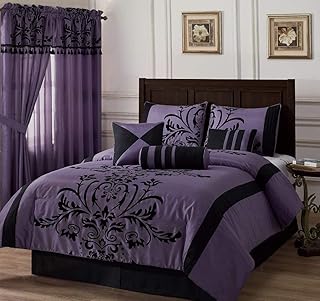 (チェズモイ) Chezmoi コレクションブラックバイオレット フロックフローラル フェイクシルク寝具布団7点セット California King パープル Nobility-Com-Violet-Cal King