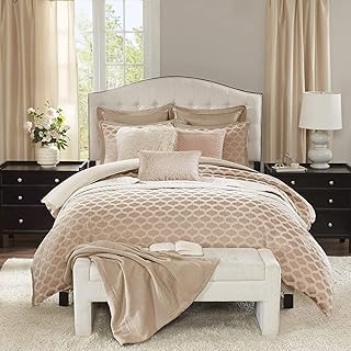 Madison Park シグネチャー ロマンス キングサイズ ベッド 掛け布団 2イン1 セット 寝具セット - ピンクブラッシュ、ジャカード - 寝具9点セット - ウルトラソフト マイクロファイバー 寝室用掛け布団
