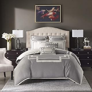 Madison Park Signature Savoy クイーンサイズベッド用掛け布団 2イン1セット バッグ入り グレー 幾何学模様 8点セット ウルトラソフト マイクロファイバー 寝室用掛け布団