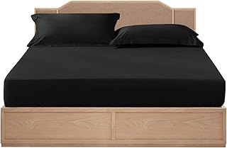 [Amazonブランド] Umi(ウミ) -ボックスシーツ 洋風/和風シート ベッドシーツ 綿100% 柔らかく肌にやさしい 吸汗 ボックスベッドシーツ マットレスカバー 着脱簡単 丸洗い可能 選べる5色 (ダブル・140X200cm ブラック)
