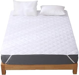 洗える ベッドパッド 快適敷きパッド 綿100% 丸洗いOK 抗菌・防臭・防ダニ加工 パッド 裏地がズレ防止素材使用 オールシーズンで使える ベッドシーツ ベッドマット ホテル仕様 (ホワイト, ダブル・140X200cm)