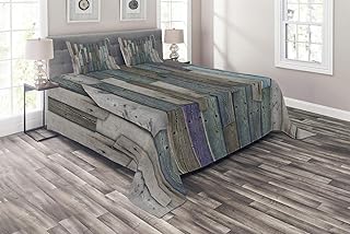 Ambesonne 素朴なベッドカバー ブルーグレー グランジウッドプランク 納屋のドア ネイル カントリーライフ テーマ プリント 装飾キルト風ベッドカバー 枕カバー付き グレーブルー キング bedcen_23500_king