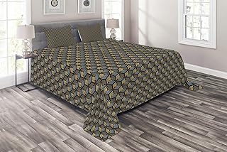 Ambesonne 日本のベッドカバー アジア禅をテーマにした伝統的な民族の鳥 オリエンタルカルチャープリント 装飾キルトベッドカバー 枕カバー付き ブルーグレー サンドブラウン ココア クイーン bedcen_57262_queen