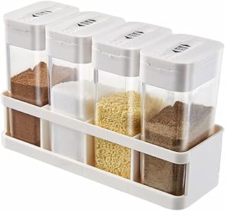 Huiyu 塩 コショウ 入れ 調味料スタンド スパイスホルダー スパイスボトル&ラック タワー 4個セット ホワイト