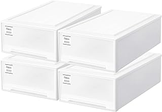 【まとめ買い4個セット】天馬 Fits フィッツケース スリムL (幅44x奥行74x高さ18cm) ホワイト| 衣装ケース 引き出し 収納ボックス 押入れ収納 日本製 プラスチック スタッキング 衣類ボックス MONO モノ
