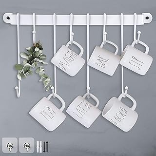 Qiang Ni コーヒーマグホルダー | カップラック (ホワイト/17インチ) 省スペースオーガナイザー 8つのフック付き コーヒーマグウォールラック用