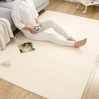 ラグ カーペット 洗える ラグマット 約1.5畳 130*200 滑り止め付 抗菌防臭防ダニ ホットカーペット対応 床暖房 (アイボリー)