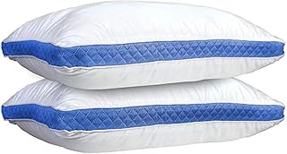 Lux Decor Collection 睡眠用ベッド枕 - 横向きで寝る人と仰向けで寝る人のためのクイーン枕2個セット - (ブルーのマチ、クイーンサイズ 18x26)