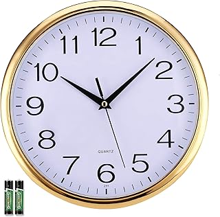Laigoo 12インチ ゴールドウォールクロック アナログ 静音 チッキング 装飾的 モダン ウォールクロック 電池式 リビングルーム バスルーム 寝室 キッチン オフィス 学校用