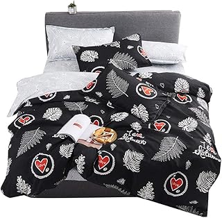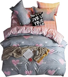 BeddingWish 布団カバーセット シングル3点セット 掛け布団カバーセット ボックスシーツ 枕カバー 寝具カバーセット 薄くて柔らかい 良い戻り粘度 豊かな色彩 肌に優しい 高密度 オシャレ 北欧風 ハート柄 シンプル XD-SANTI-JYY (ベッド用掛けカバー 150*210cm)