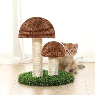 Scorpiuse1_jp 猫用爪とぎポール キノコ型 高さ36cm つめとぎ キャットタワー ネコポール 猫タワー 猫用おもちゃ 耐噛み 麻縄 麻ひも 手巻き 人気 可愛い 猫の木 天然サイザル麻紐 多頭飼い 組立簡単 省スペース 家具保護 運動不足解消 子猫から大型猫 Sサイズ ブラウン