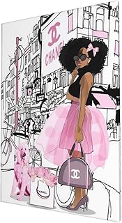 FOCUST アフリカンアメリカン ウォールアート ブラックガール ピンクキャンバスプリント モダンファッション レディースアート 現代絵画 スタイリッシュ フェミニンなフレームアートワーク 壁装飾 女の子の部屋のインテリアに 16 x 24インチ