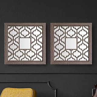 qmdecor バーンウッドフレーム 壁装飾ミラー モダンファッション MDF木製素材 壁掛けミラー 2個セット