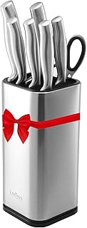 Laxinis Worldユニバーサルナイフブロック、はさみ付きステンレススチールラウンドナイフホルダー-スロット、カウンタートップストレージ、12個の8.5インチブレードナイフ、9インチ×4.5インチを保持 Laxinis World Universal Knife Block, Stainless Steel Round ユニバーサルナイフブロックホルダー、oouナイフホルダー、ナイフなし、取り外し可能でお手入れ簡単、安全のためのラウンドナイフホルダー、省スペースナイフストレージ、ユニークなデザインの刃を保護するスロット。が包丁立てストアでいつでもお買い得。