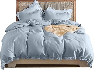 AUV 布団カバー 3点セット 寝具カバー 洋式・和式兼用 ベッドカバー 掛け布団カバー ボックスシーツ 枕カバー シーツカバー 肌に優しい フリル付き ピーチスキン加工 布団用 洗い替え速乾タイプ( シングル・ライトグレー)