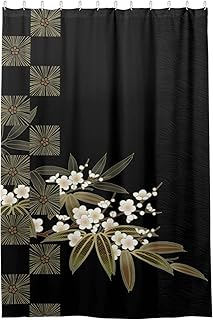 シャワーカーテン 和風 和柄 ブラック 黒色 バスカーテン お風呂カーテン 浴室カーテン 防カビ 防水 間仕切り 目隠し 取り付け簡単 120×180 リング付き おしゃれ 窓用 遮光 断熱 人気
