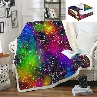 レインボー ギャラクシー ブランケット 星空 スローブランケット カラフル スペース シェルパ フリース ブランケット 宇宙 星雲 スロー ソフト 快適 ベッド ソファ ブランケット 子供 ティーン用 (カラフル、スロー(50インチx60インチ)