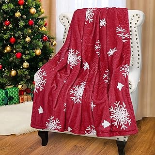 クリスマス スロー ブランケット レッド ホワイト 雪の結晶 ホリデー ベッドブランケット クリスマス ソフト 暖かい フリース プラッシュ ブランケット スロー 快適 フランネル ブランケット ソファ 寝室 51 x 63インチ