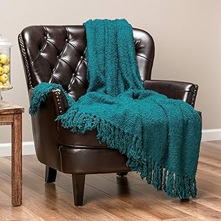 Chanasya ファジーテクスチャー シャイニースレッド ソフト ふわふわ スローブランケット 暖か 快適 豪華 ブランケット ソファ 椅子 カウチ ベッド リビングルーム フリンジタッセル付き ブルー スローブランケット (50x65インチ) ティール
