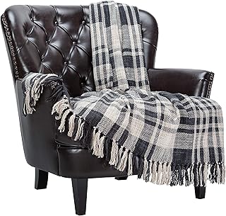 Chanasya ファームハウスパターン 格子縞 スローブランケット 軽量 ニット テクスチャー 織物 装飾ブランケット カウチ ベッド リビングルーム ブランケット タッセル付き フリンジ付き スローブランケット (50x65インチ) ブラック