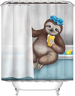 面白い 動物 シャワーカーテン ファブリック シャワーリング ナマケモノ 浴槽に座るスポンジ 浴室用カーテン フック付きかわいいカーテン 72インチ×72インチ ブラウン ブルー
