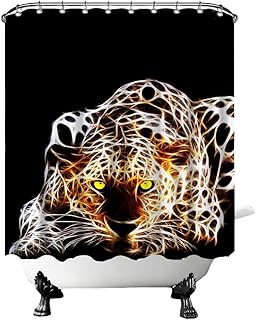 Jaguar シャワーカーテン ジャングルアニマルテーマ バスカーテン 抽象的 ヒョウ柄ファブリックカーテン フック付き 72インチ×72インチ ブラック