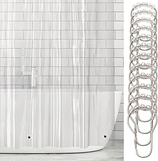シャワーカーテンライナー フック12個付き ポリエステル生地 シャワーカーテン 洗濯可能 防水シャワーカーテンセット バスルーム用 (72インチ x 72インチ)