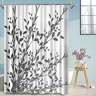 葉柄 シャワーカーテン ブラック トープ 秋冬 植物 木 自然 バスカーテン ユニセックス ファブリックカーテン フック付き 72インチ×72インチ ホワイト
