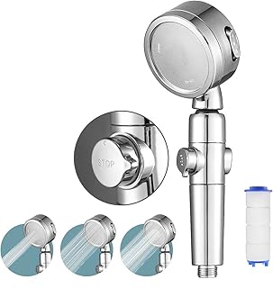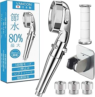 Vancon シャワーヘッド 節水 3段階モード 水量調節 高水圧 低水圧 増圧用シャワーヘッド 肌ケア アダプター付き 極細水流 軽量 手元止水 水漏れ防止 取付簡単 国際基準G1/2 (シルバー)
