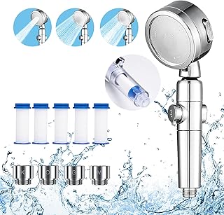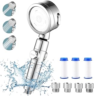 シャワーヘッド 節水シャワー 低水圧用 塩素除去 3段階モード 水量調整 増圧軽量 浄水 手元止水 80%節水 アダプター&カートリッジ付き 水漏れ防止 取付簡単 (銀)