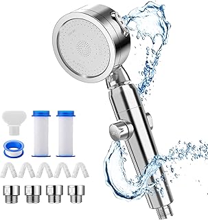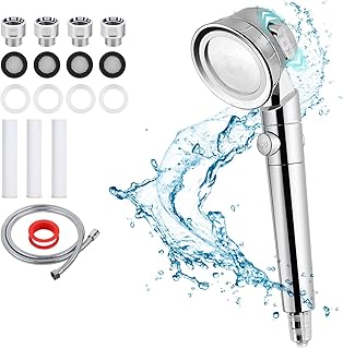 HOMIEE シャワーヘッド 最大80%節水 塩素除去 増圧 浄水 3段階モード 手元止水 極細水流 水量調整 角度調整 軽量 スキンケア 保湿 活性炭フィルター 取付簡単 シャワーキャップ 5枚付き ステンレスシャワー板 国際汎用基準G1/2規格 (シルバー)
